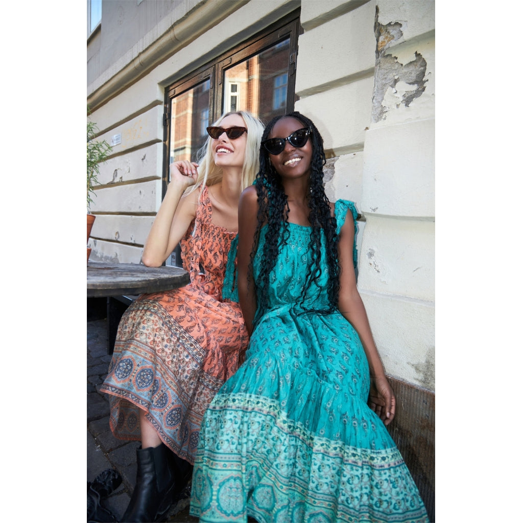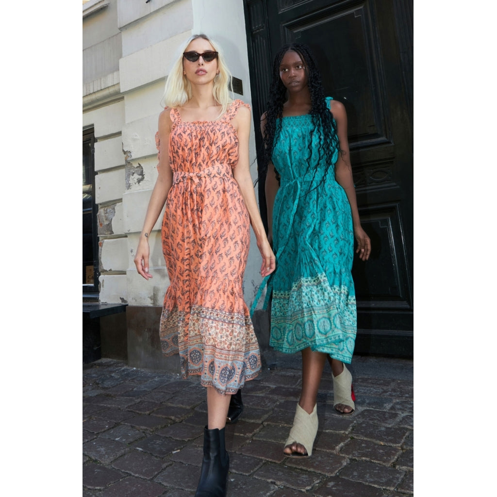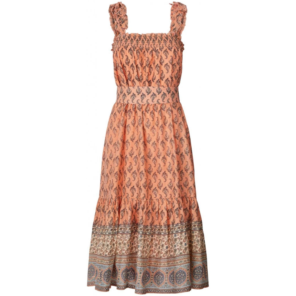 The Tabitha midi dress in Coral is designed by our favourite Danish brand Lollys Laundry. Part of their high Summer collection, this is a classic sundress with a unique Indian inspired botanical print.