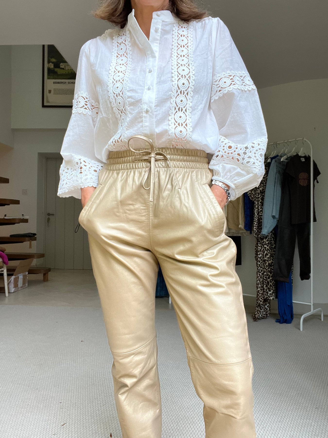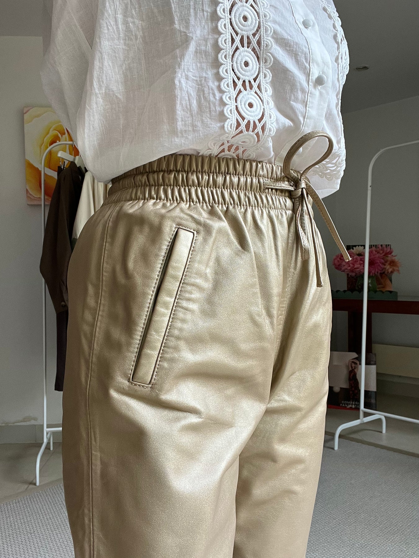 Made from the smoothest buttery leather in a wonderful winter palette, these NEW joggers come in light gold. They are a relaxed style with an elasticated waist and side pockets. Wear them with trainers and an oversized knit or dress them up with an ankle boot and a blazer for the evening.
